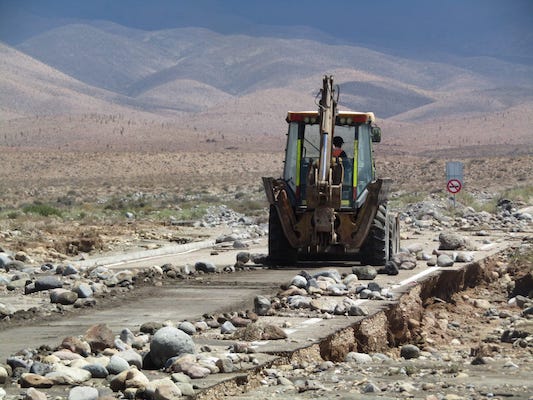 Las autoridades y jefes de servicios, especialmente MOP recorren las ruta y comunidades del interior de Calama para determinar las condiciones tras la fuerte lluvia que se dejó caer el día viernes durante todo el día en distintos puntos de las rutas y pueblos precordilleranos.