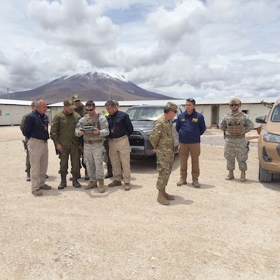 Posteriormente, las autoridades se trasladaron hasta la comuna de Ollagüe, donde pudieron presenciar en terreno los servicios conjuntos que actualmente se están ejecutando, constatando el despliegue y el trabajo coordinado en el control y resguardo del territorio fronterizo.