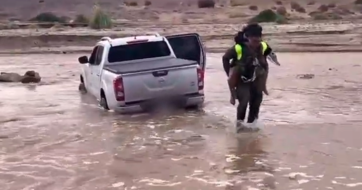 Carabineros del Retén Ascotán (F) realizó un exitoso rescate, al sacar del cauce a una familia que quedó atrapada debido a la crecida del Río Loa, en el sector Taira, comuna de Ollagüe.