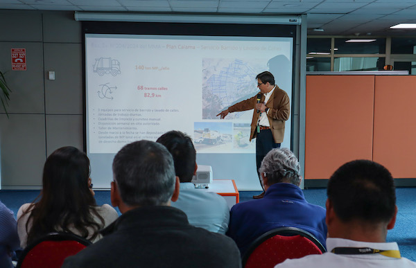 “El fin de este encuentro es poder conversar, invitar a las empresas que están en la zona de Puerto Seco de Calama, compartir con ellos un poco el trabajo y la experiencia que Codelco está desarrollando en materia de control de emisiones de material particulado en la ciudad”, explicó Fernando Promis.