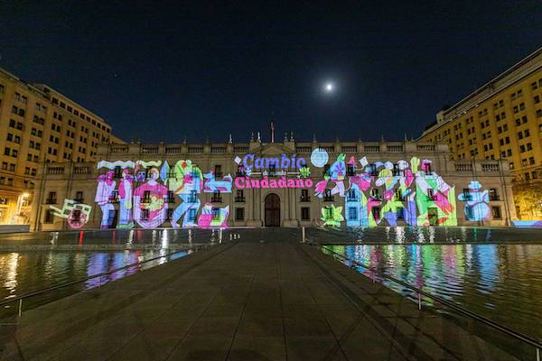 Una proyección de luces que abarcó todo el frontis del Palacio de La Moneda, con una serie de frases que dan cuenta del espíritu que busca consolidar el nuevo Gobierno, dieron la partida a los primeros días del Gobierno ciudadano encabezado por el Presidente Gabriel Boric.
