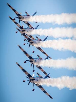 Dentro de las actividades de este equipo de acróbatas aéreos también contempla participar del desfile del 23 de marzo en el Vado de Topater con un escuadrón y con una bandada de aviones.