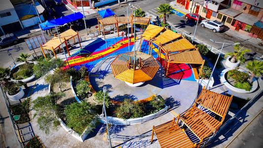 El proyecto —que implicó una inversión total de $232 millones, financiados a través del Fondo Nacional de Desarrollo Regional (FNDR) del Gobierno Regional de Antofagasta— incluyó la renovación completa del mobiliario urbano, la instalación de sombreaderos, el recambio de pavimentos, la mejora del paisajismo y la implementación de accesibilidad universal. Estas obras permitieron transformar un espacio tradicional de encuentro en una plaza más segura, moderna e inclusiva para toda la comunidad.