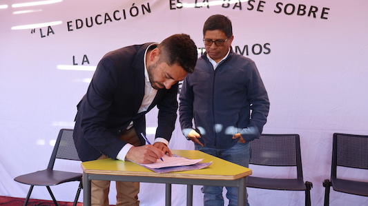 En la Escuela Básica Rural Camar, que cuenta con 17 estudiantes, el director ejecutivo del Servicio Local de Educación Pública (SLEP) Licancabur, José Martínez Chiguay, y el presidente de la comunidad atacameña de Camar, Héctor Cruz Castro, firmaron un importante convenio que sienta las bases para una colaboración continua en beneficio de la educación pública y el desarrollo de la comunidad. La actividad contó además con la presencia del Seremi de Educación, Alonso Fernández.