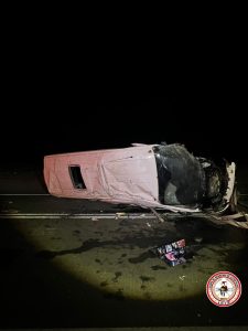 Según antecedentes a la altura del kilómetro 76 de la ruta antes mencionada se encontraron frontalmente un mini bus con un auto particular colisionando fuertemente dejando una estela de destrucción y a uno de los ocupantes fallecido y otro herido de gravedad.